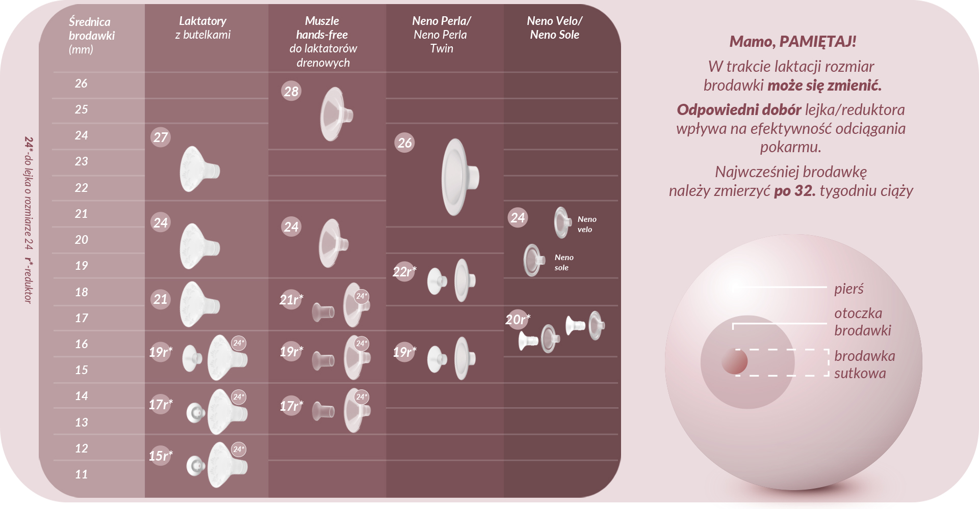 Zamień swój Neno Bianco w laktator bezprzewodowy (hands-free) – wystarczy dokupić muszle laktacyjne z reduktorami (17, 19 i 21 mm). To komfortowe rozwiązanie dla mam, które chcą odciągać mleko bez użycia rąk, np. podczas pracy przy komputerze czy opieki nad dzieckiem.
